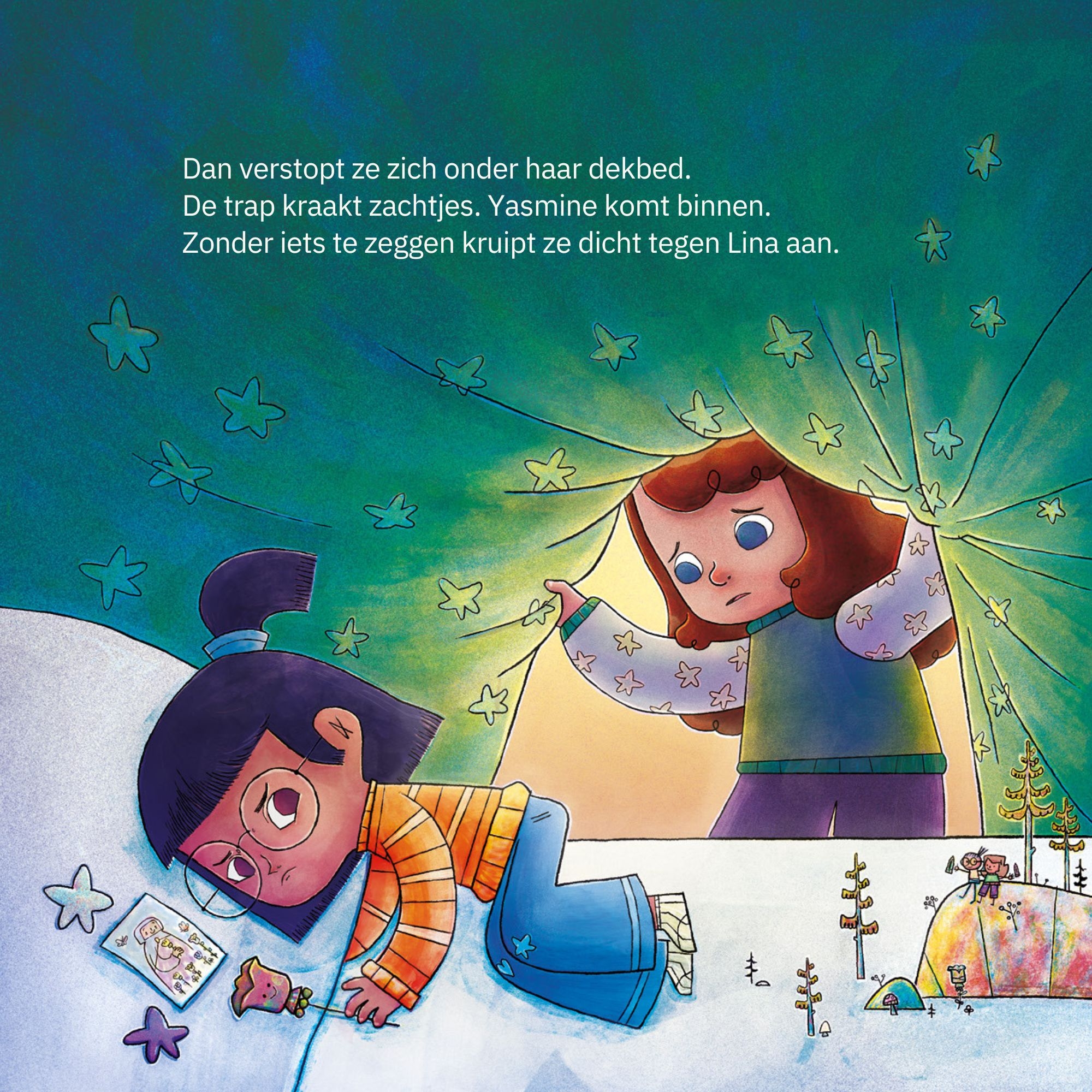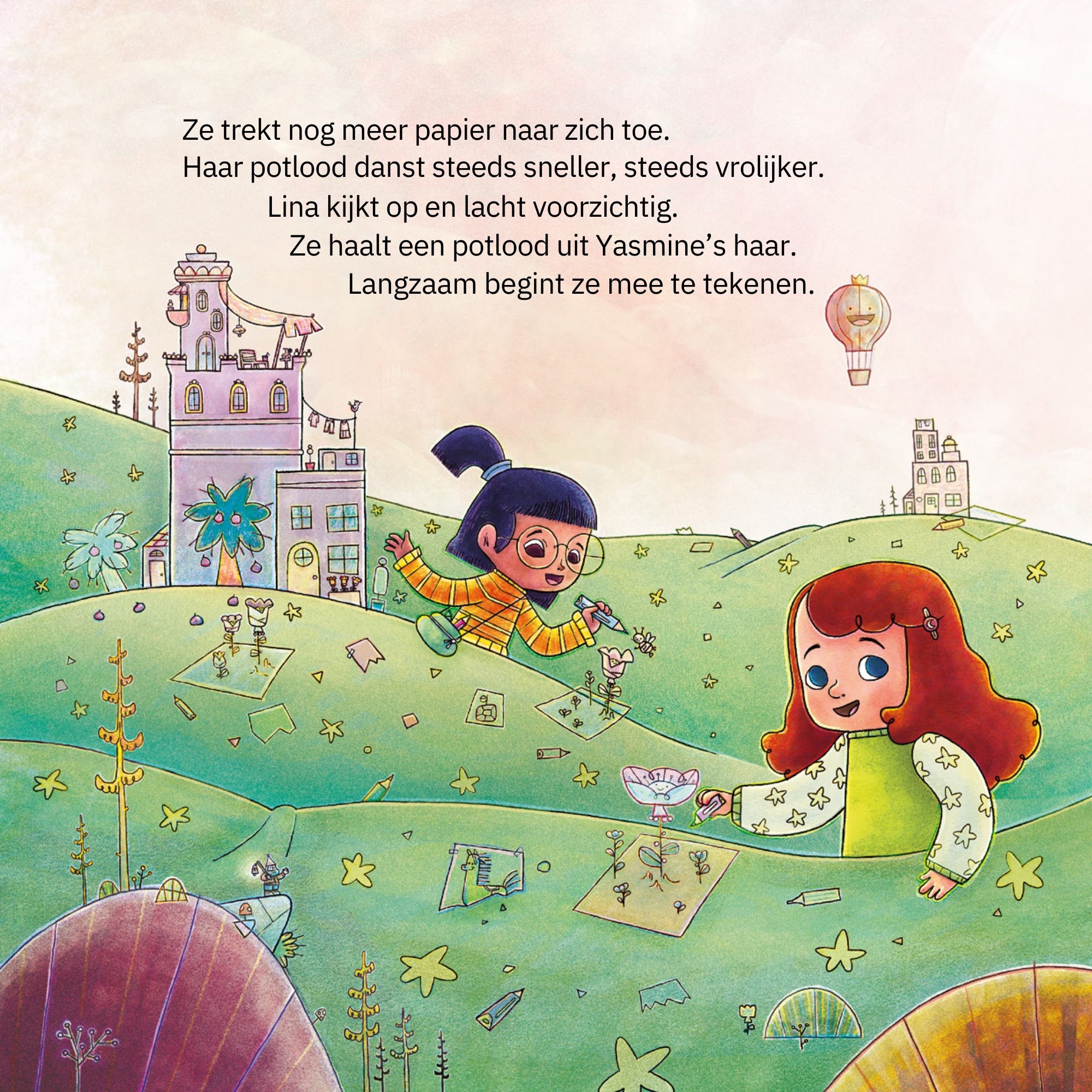 Lina is dol op tekenen. Met haar potloden en penselen maakt ze de wereld vrolijker, waar ze ook gaat. Maar wanneer Lina verdrietig nieuws krijgt, weet ze even niet wat ze moet doen. Ze mist haar oma en het huis dat ze door de oorlog heeft moeten achterlaten. Hoe kan je troosten en troost vinden als woorden tekortschieten? Samen ontdekken Lina en haar vriendin Yasmine de kracht van de verbeelding.