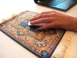 Gezellig schrijven of tekenen met een Perzisch tapijtje als muismatje? Met kleurrijk motief én vrolijke franjes. Het bevordert de creativiteit, zeggen auteurs ons 🙂